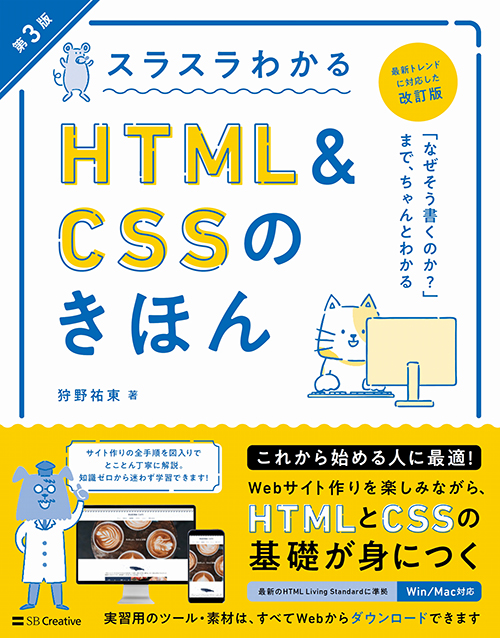 - ベストセラーが第3版になって新登場『スラスラわかるHTML&CSSのきほん第3版』(狩野祐東著/SBクリエイティブ)が2022年7月9日に発売されました。